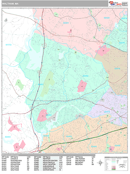 Amazon.com: ZIP Code Wall Map of Waltham, MA ZIP Code Map Waltham Ma Zip Code Map | Campus Map.