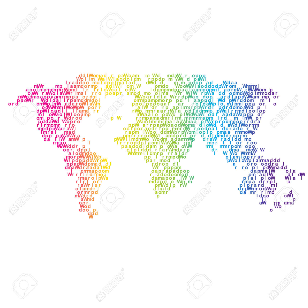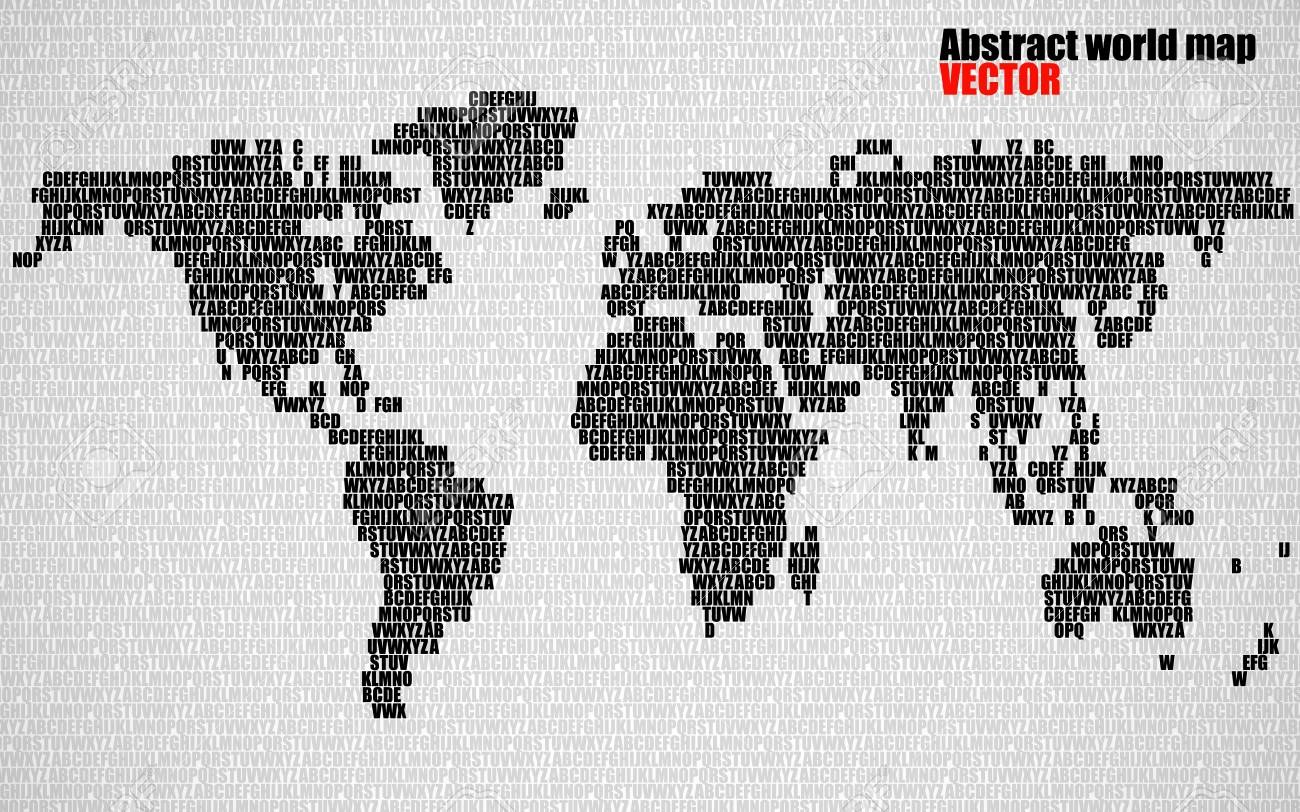 Map of the World in Letters Abstract World Map With Letters Of English Alphabet. Vector .