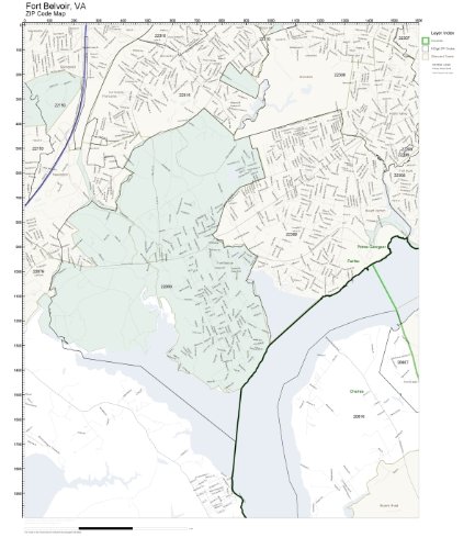directions Fort Belvoir, Virginia Zip Code Boundary Map (VA).