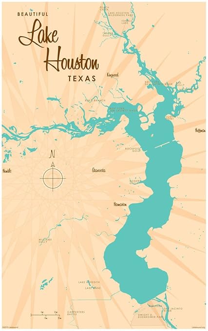 Amazon.com: Lake Houston Texas Vintage Style Map Art Print Poster Lake Houston wilderness park map Lake Houston map (Texas USA).