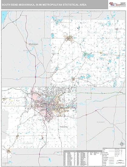 Amazon.com: MarketMAPS South Bend Mishawaka, IN Metro Area Wall Granger, Indiana Zip Code Boundary Map (IN).