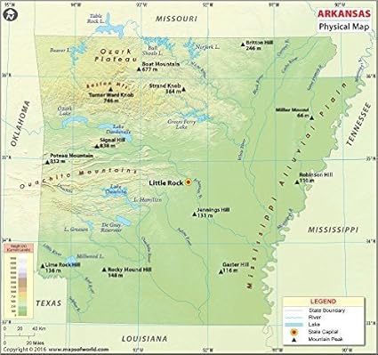 Amazon.: Arkansas Physical Map (36" W x 33.76" H) : Office Physical map of Arkansas.